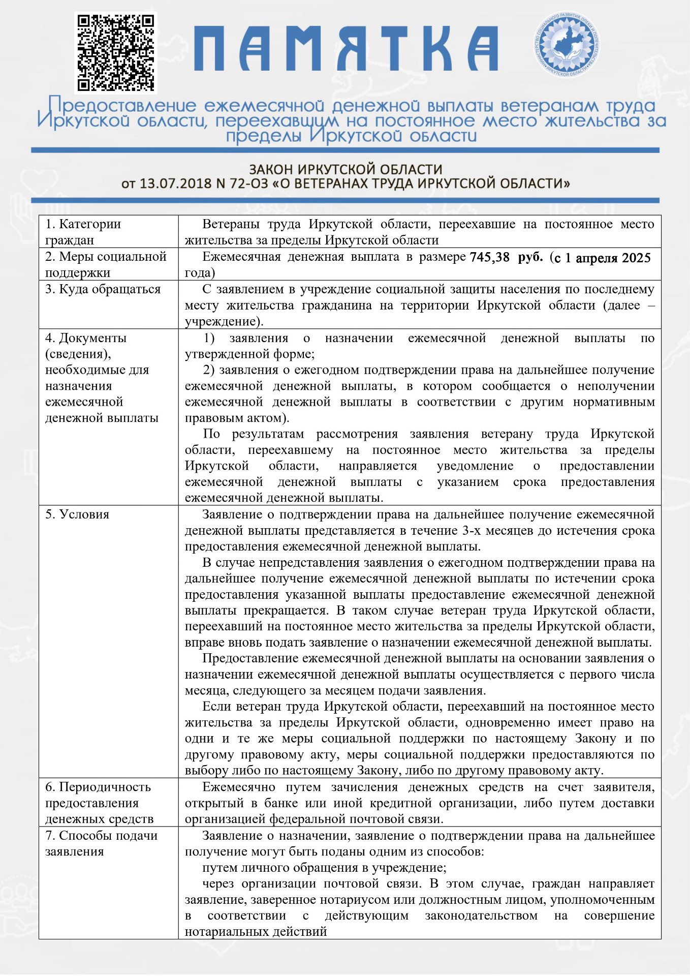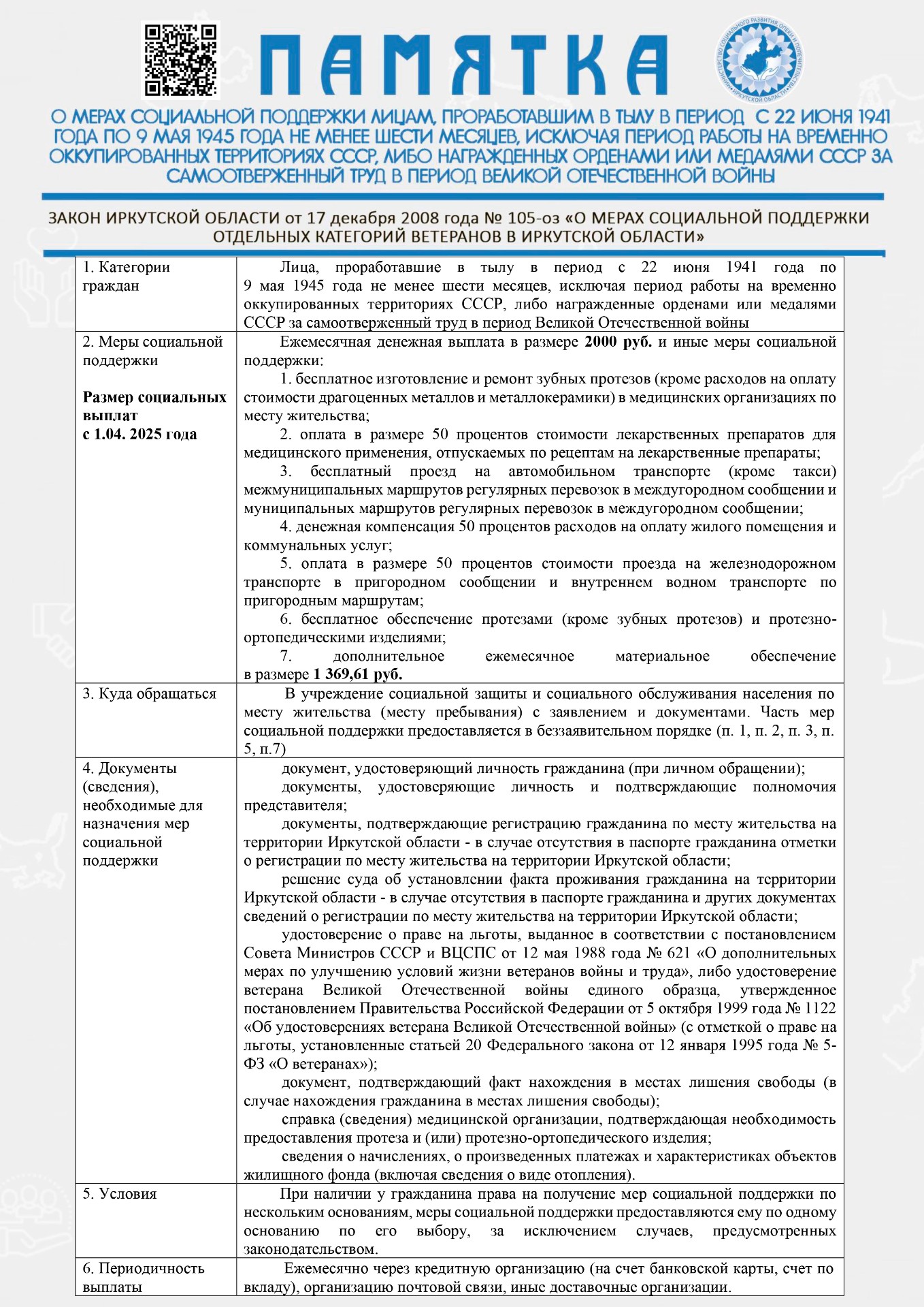 Отдельные категории граждан в иркутской области