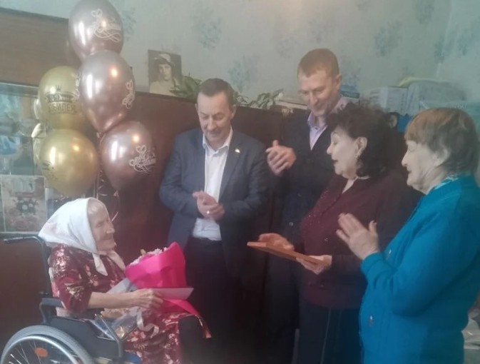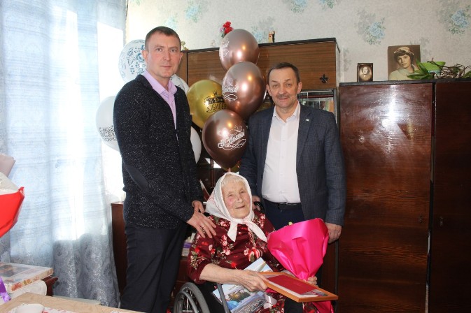 И.И. Кобзева и конфеты вручил юбилярше директор Управления социальной защиты