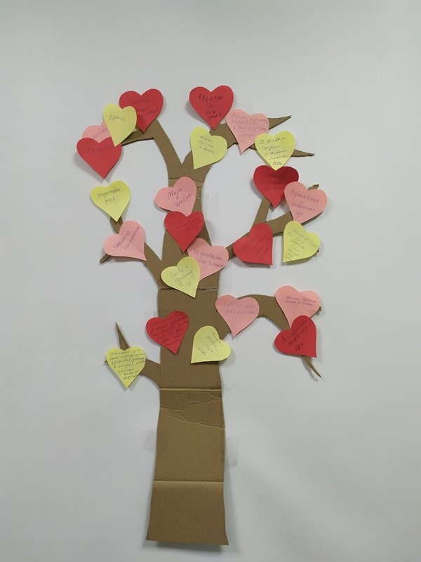 пожелания на бумажных сердечках. Эти послания добра, словно листочки, были
