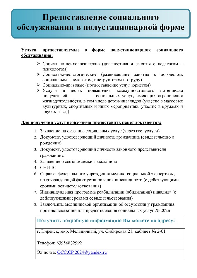 Предоставление социального обслуживания в полустационарной форме - УСЗСОН Киренск-Катанга ОФИЦИАЛЬНЫЙ САЙТ