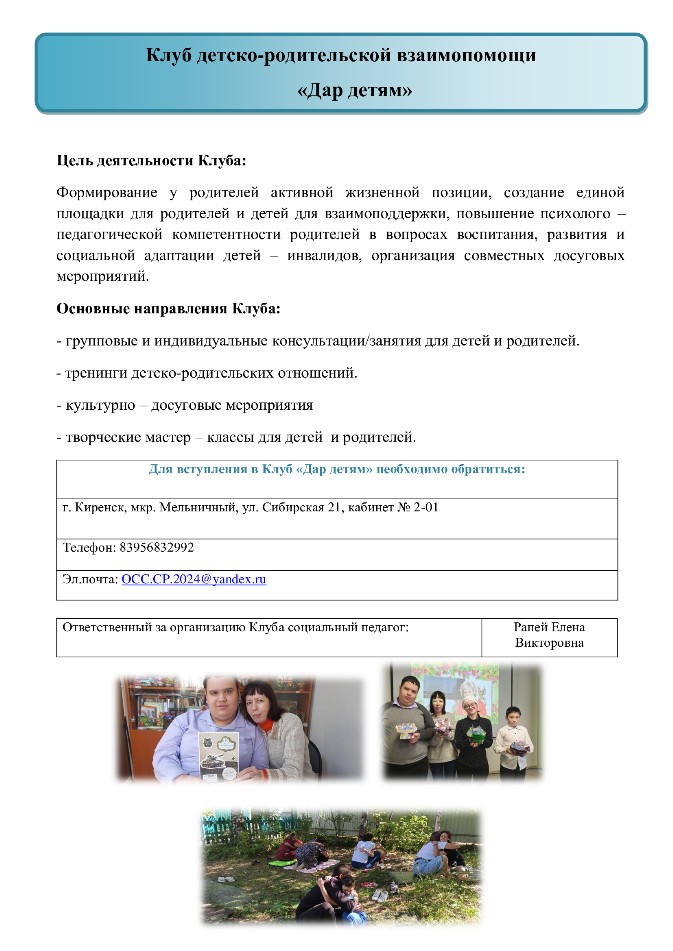 Клуб детско-родительской взаимопомощи «Дар детям» - УСЗСОН Киренск-Катанга ОФИЦИАЛЬНЫЙ САЙТ